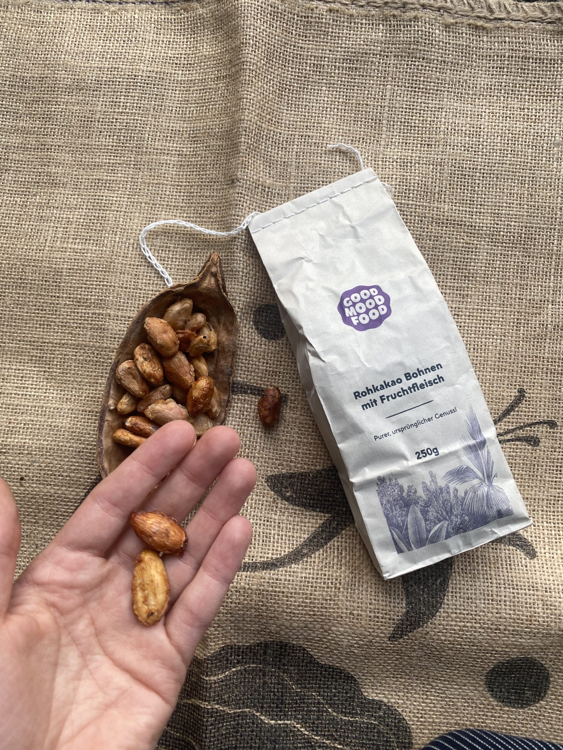 Ich esse die Kakaobohnen gerne nach dem Training oder als schnellen Snack unterwegs. Sie sind für mich eine hochwertige Alternative zu Schokolade, weil sie keinen Zucker enthalten und trotzdem intensiv schmecken. Durch das Fruchtfleisch entsteht eine frische, fruchtige Note, die ich sehr mag. Die Bohnen sind roh und nicht fermentiert, wodurch wichtige natürliche Inhaltsstoffe erhalten bleiben, unter anderem Theobromin sowie Mineralstoffe wie Magnesium und Eisen. Für mich ist das ein natürliches Lebensmittel mit echter Energie.