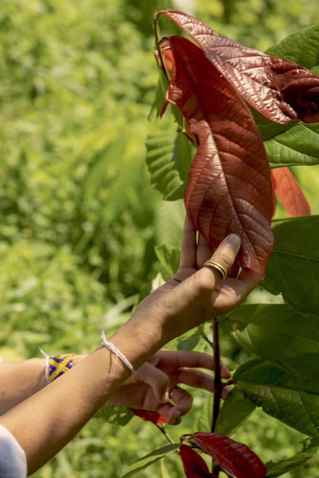 Die Kakaobäume wachsen eingebettet in vielfältige Mischkulturen – umgeben von Mango-, Bananen- und Zitrusbäumen.